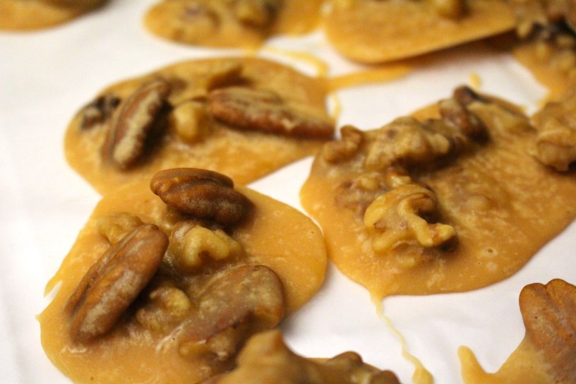 7. Quickly drop by rounded spoonfuls on wax or parchment paper. The candy will spread out a little bit