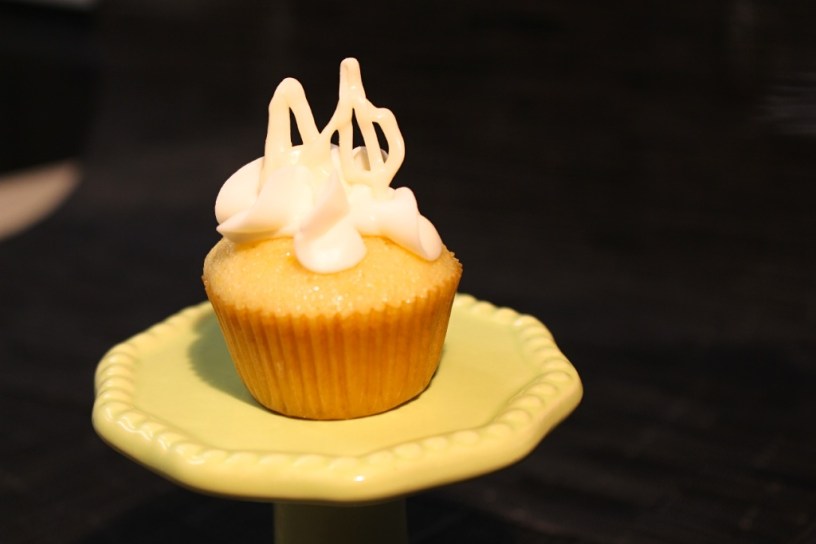 It was sunny and warm here in California lately and I have been so ready for spring! These Lemon Cupcakes are a great “springy”dessert. They are light and full of lemon flavor. These were also the perfect mini dessert for me to make when I was asked to make food for a sorority event. (Hence, the white chocolate Alpha Phi designs!)