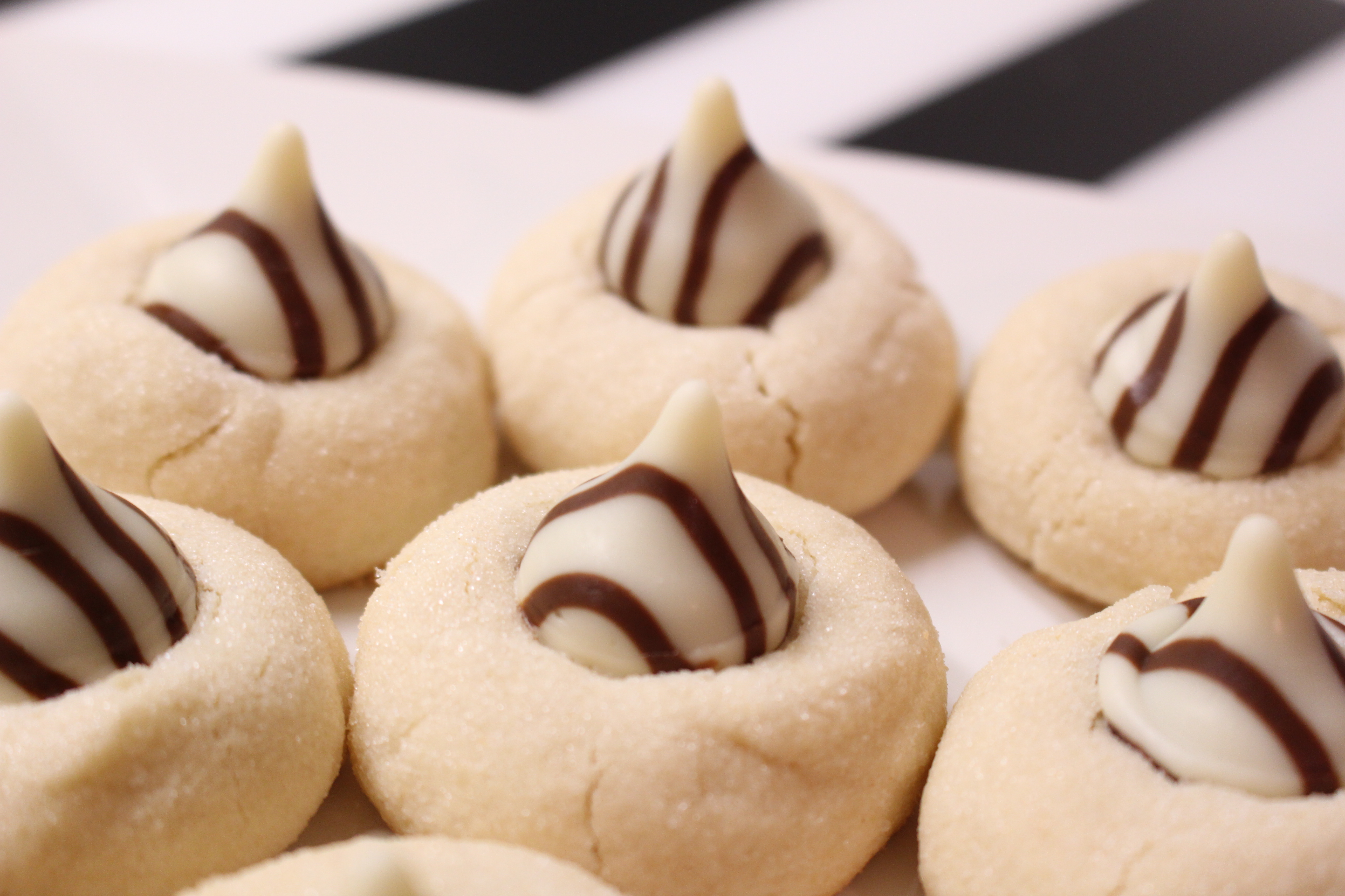 A Hershey’s Kiss situated on top of a soft sugar cookie rolled in sugar, they are a good fun cookie to make and they really aren’t that difficult. I do suggest making sure you have room in your freezer to fit the pan BEFORE you start making them. I have made that mistake before which leads to your kisses melting on top of the cookie… still delicious, but not as pretty.