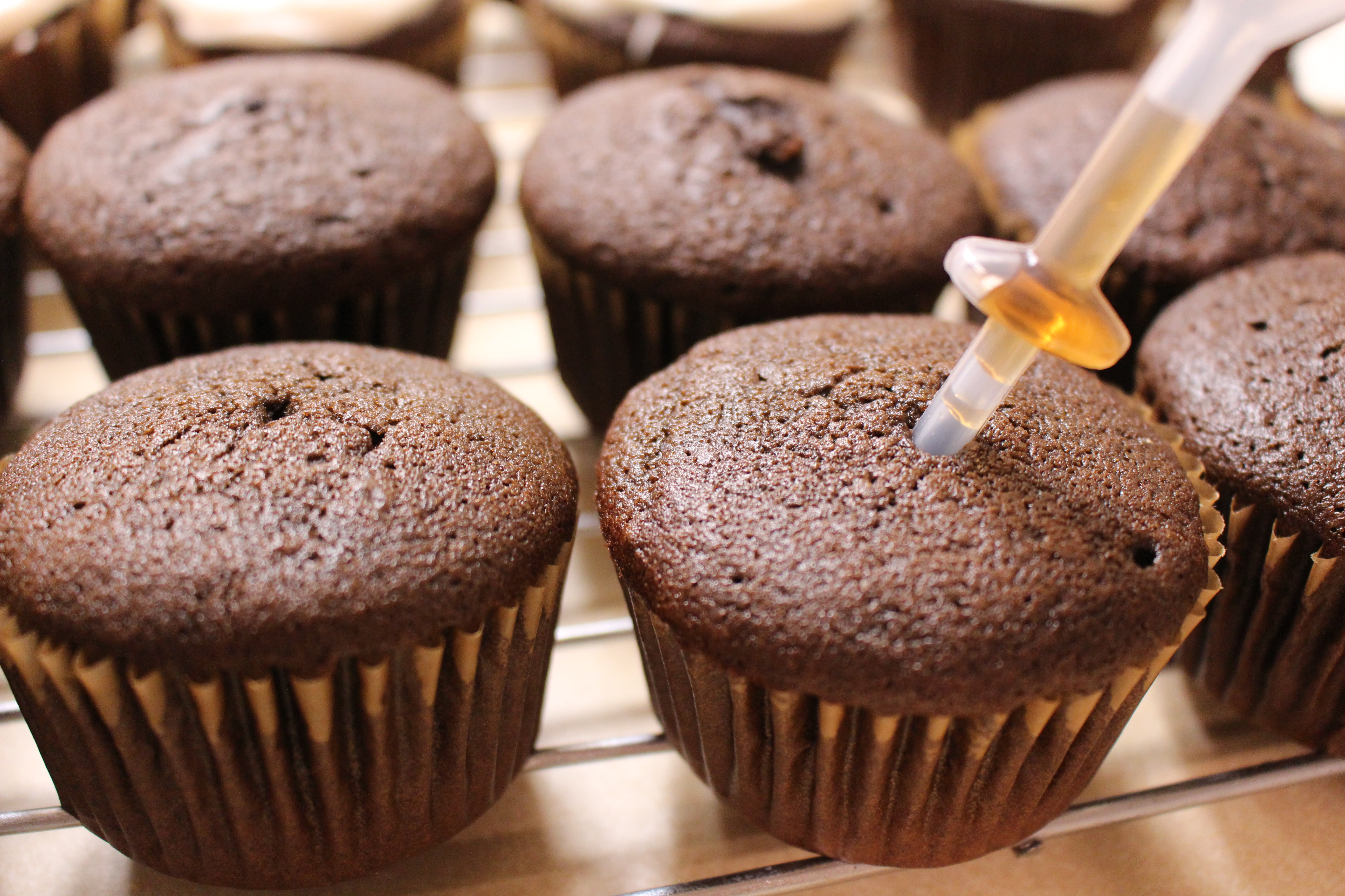 8. Once the cupcakes have cooled completely you can “inject” them with additional rum if desired. I bought these super cute cupcake things from Wilton that are so helpful with this!
