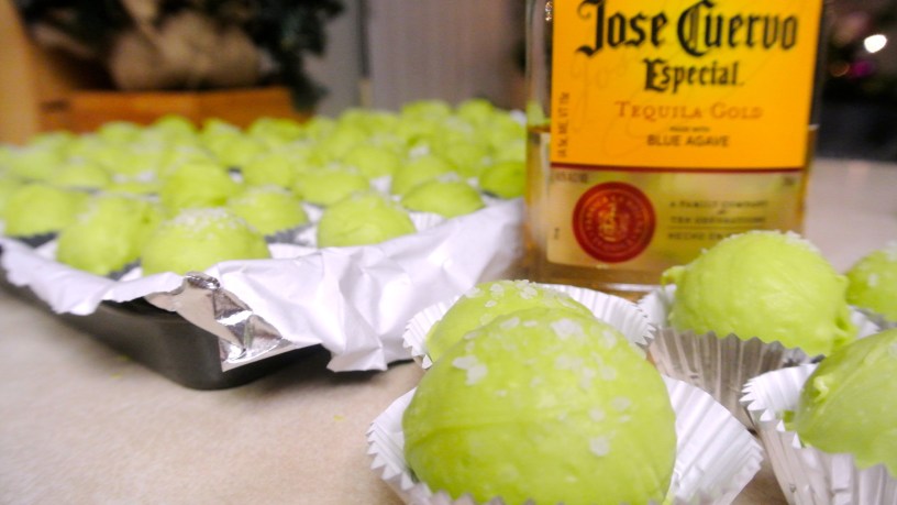 - While coating is still wet, give cake ball a healthy sprinkling of decorating sugar and margarita salt.