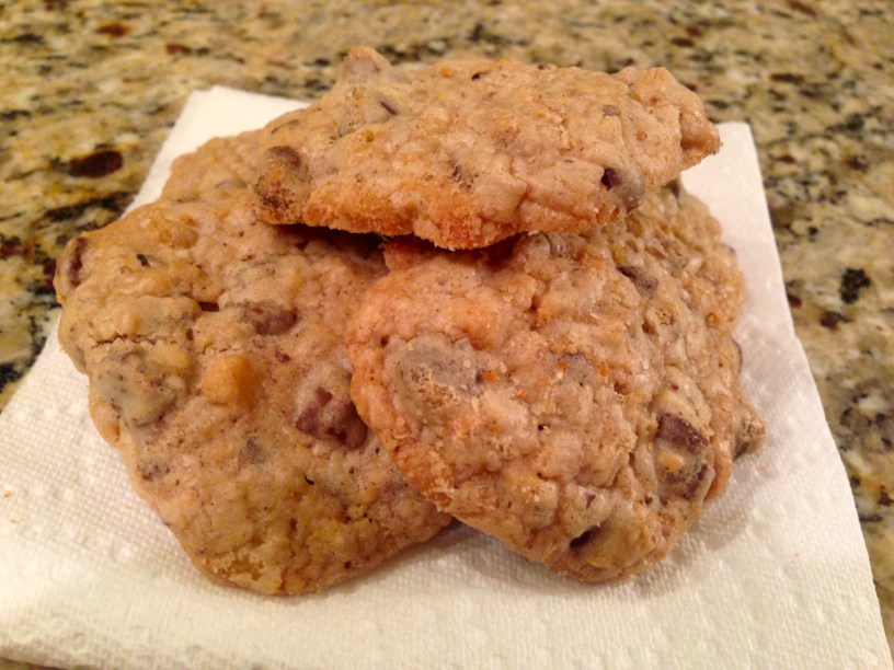 4. Drop by round spoonfuls on to a baking sheet 2 inches apart. Bake in the oven for 14-17 minutes or until golden brown. Remove from cookie sheet and let cool on wire rack.
